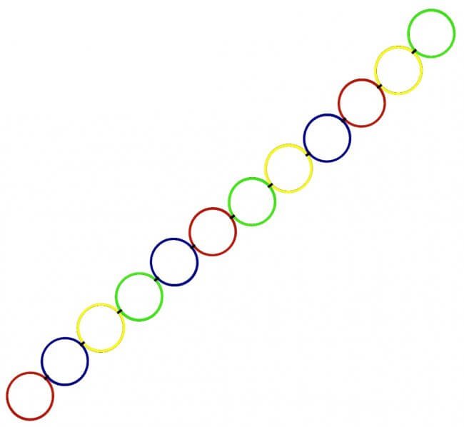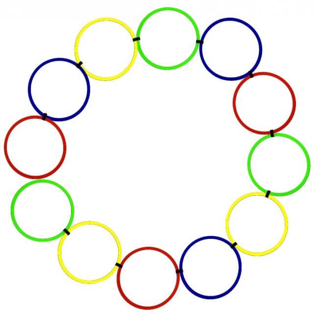 Wszechstronny przewodnik pierścieniowy oferuje liczne warianty ułożenia. Całość składa się z: 12 kolorowych, płaskich pierścieni o średnicy 45cm. Każdy pierścień można ustawić indywidualnie, aby zmienić kierunek i kąt. Pokrowiec w komplecie.