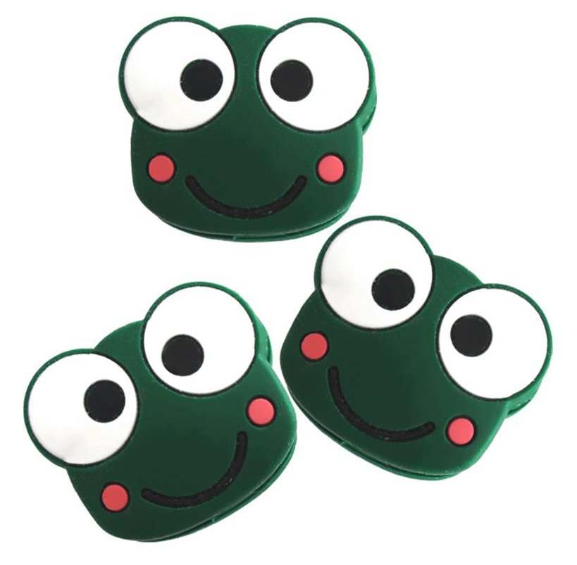 Wibrastopy do rakiet tenisowych w kształcie żabek marki Pro's Pro. Mocowane na dwie środkowe struny pionowe. Zabawny wzór odświeży każdą rakietę. Skutecznie wyciszają moment uderzenia. Wysoka jakość i łatwość montażu.