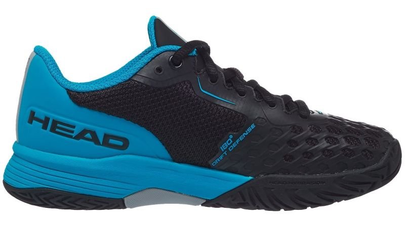 Czarno-niebieskie juniorskie buty tenisowe dla dzieci Head Revolt Pro 3.5 Junior Raven Capri są najwyższym modelem juniorskim z kolekcji Head dla dzieci z 2021 roku. Hybrydowa podeszwa uniwersalna zapewni komfort, bezpieczeństwo i dynamikę na każdym rodzaju kortu.