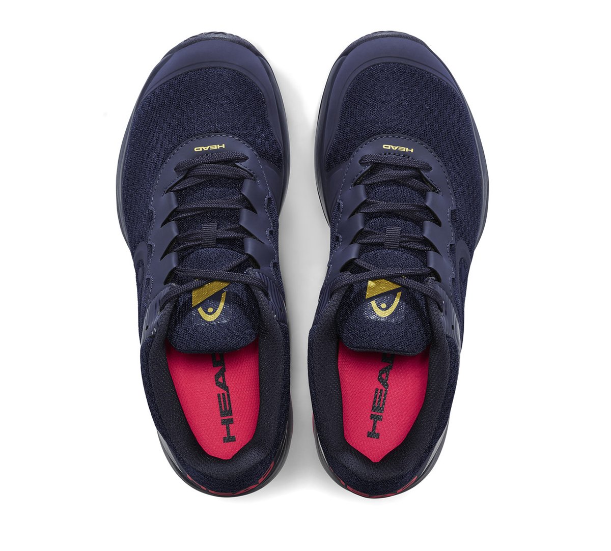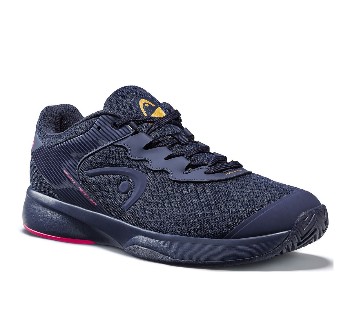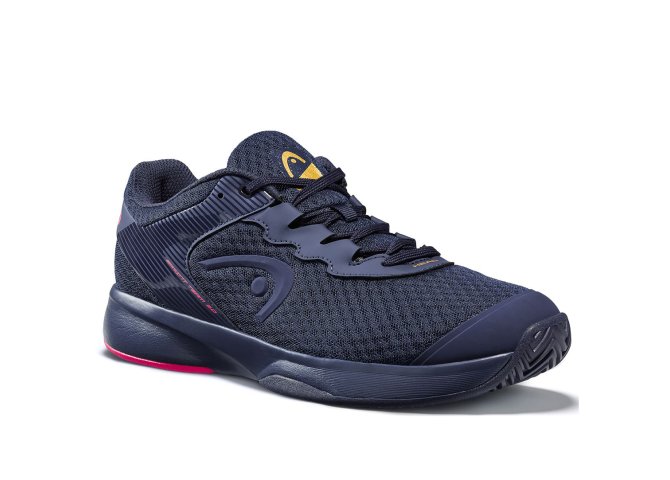 Ciemno niebieskie damskie buty do tenisa Head Sprint Team 3.0 Women Dress Blue Pink  z różowymi elementami i podeszwą uniwersalną.