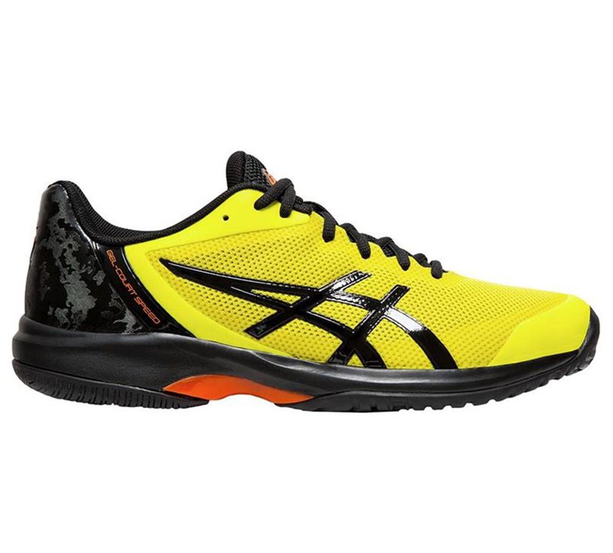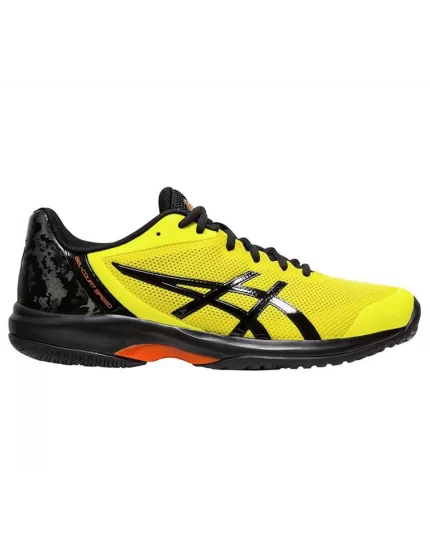 Męskie buty tenisowe Asics Gel Court Speed Clay w nowej wersji kolorystycznej Sour Youzu. Buty nastawione są na zapewnienie maksymalnej szybkości na korcie. Podeszwa w jodełkę najlepiej sprawdzi się na kortach ziemnych. Zastosowane materiały w cholewce gwarantują optymalną wentylację stopy. Buty w czarno-żółtej kolorystyce.