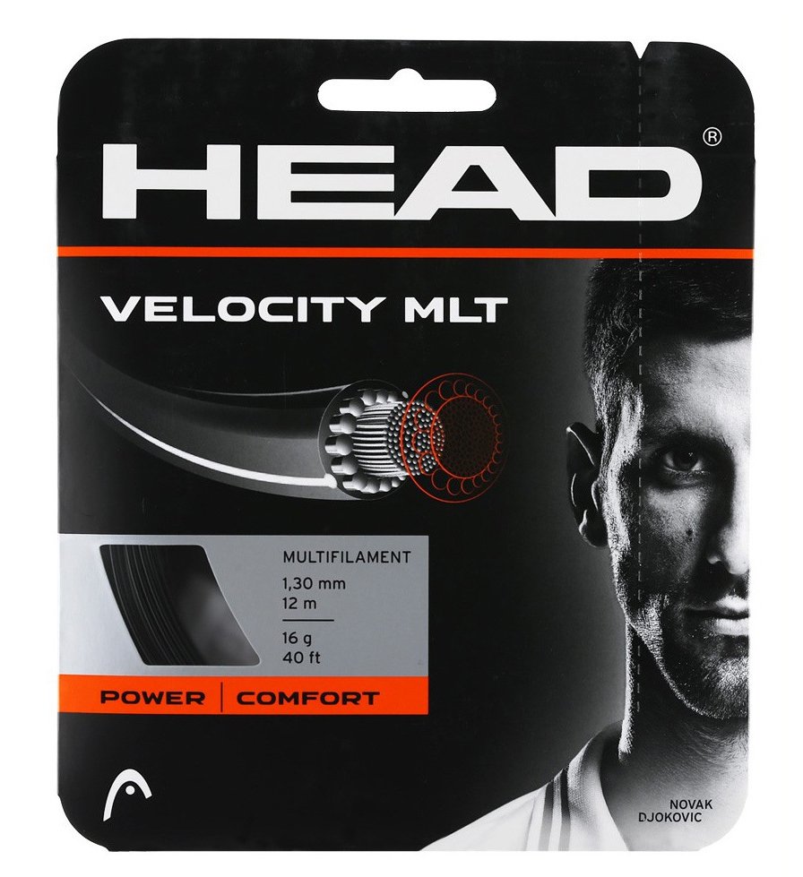 Naciąg tenisowy Head Velocity MLT. Jego wielowłóknisty rdzeń otoczony jest grubszymi włóknami, które zwiększają efektywność energetyczną i zapewniają moc. W tym samym czasie powłoka obniżająca tarcie gwarantuje wyrównanie strun po każdym uderzeniu zwiększając możliwość rotacji.