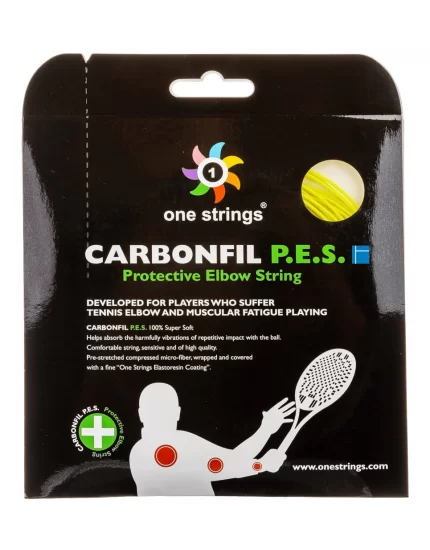 One Strings Carbonfil Protective Elbow String. Najlepszy wybór na problemy z łokciem. Zaprojektowany specjalnie w celu maksymalnej ochrony przedramienia. Miękki, elastyczny naciąg posiada właściwości redukujące drgania przenoszone na łokieć. Zbudowany z ze wstępnie naciągniętych cienkich włókien w elastycznej osłonie. Doskonale komponuje się z rakietami każdego typu.