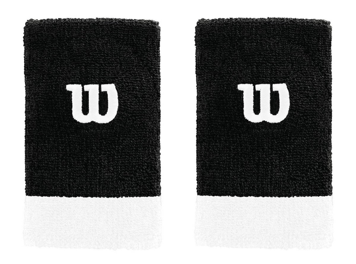 Długie, zielone frotki przeciwpotne na nadgarstek z logiem firmy Wilson w kolorze białym. Miękki i elastyczny materiał zapewnia szybkie wchłanianie potu. Opakowanie zawiera 2 frotki.