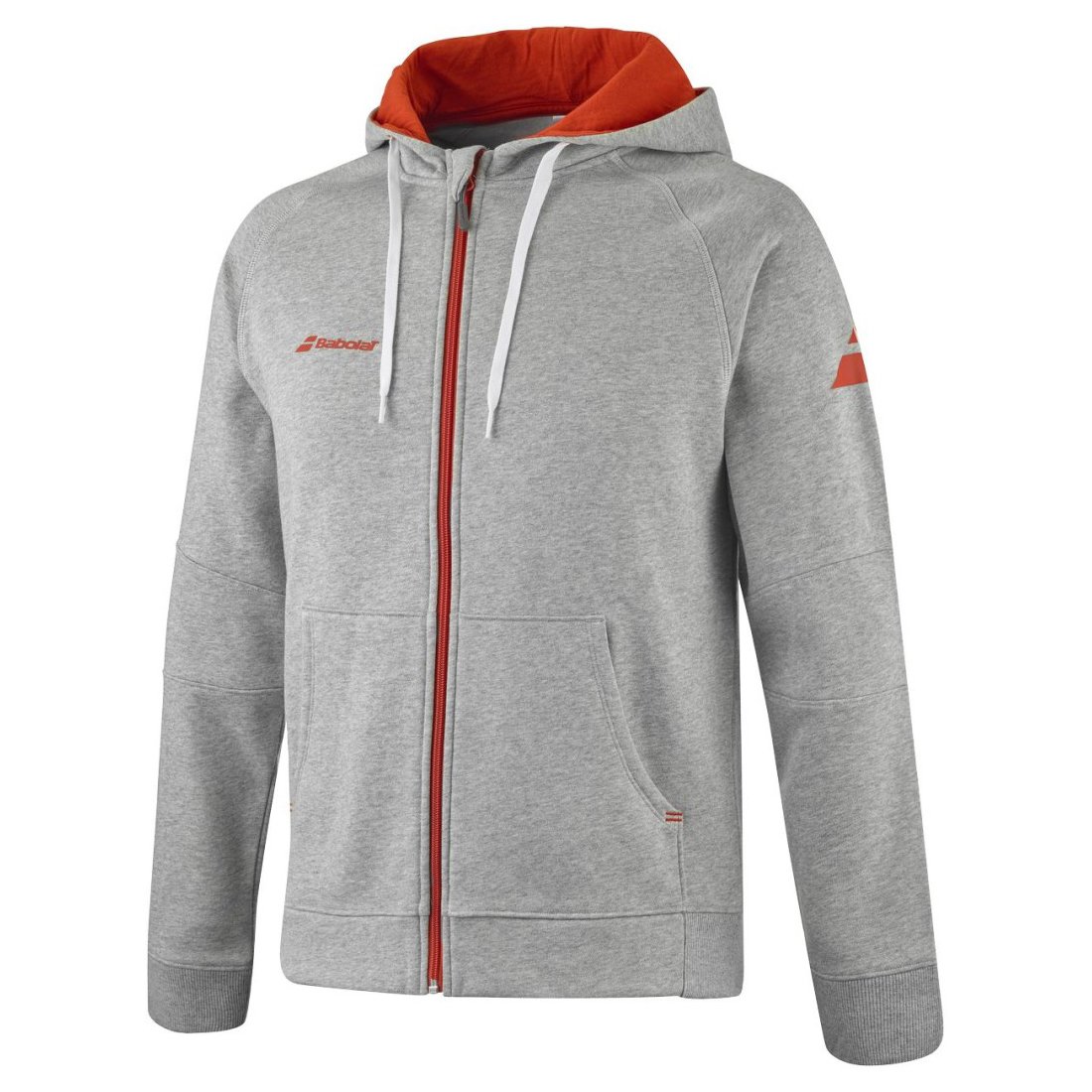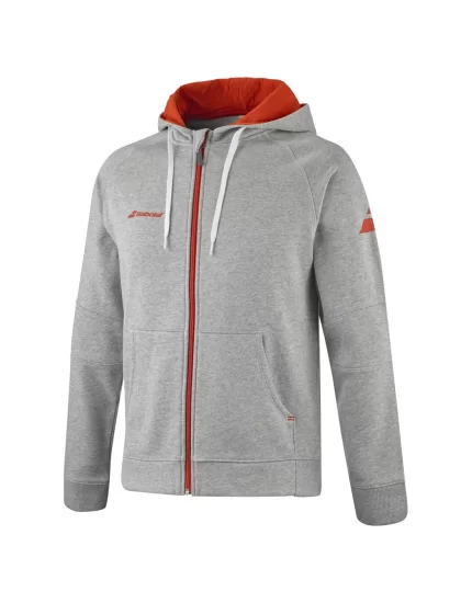 Rozpinana bluza z kapturem z grubego, ciepłego i przytulnego w dotyku materiału z dużą zawartością bawełny - idealna na chłodniejsze dni. Dyskretne logo Babolat na klatce piersiowej.