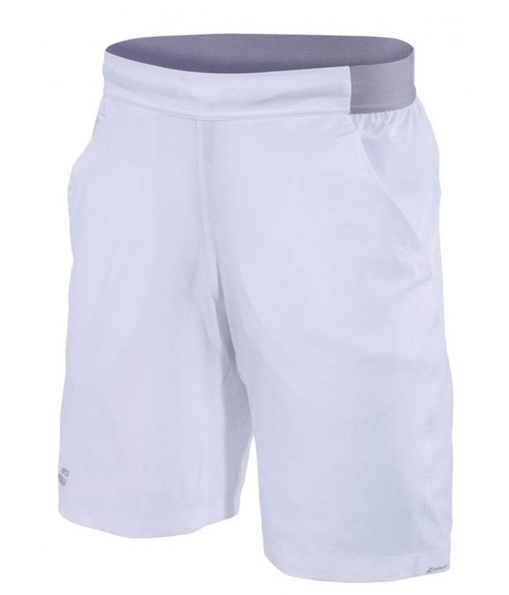 Białe, juniorskie spodenki tenisowe Babolat Performance Short X-Long dla chłopców. Nowe spodenki tenisowe na lato 2019 zapewnią świetne dopasowanie za pomocą elastycznego materiału wykorzystanego w pasie, który dodatkowo wyposażony jest w sznurek w celu regulacji ucisku.