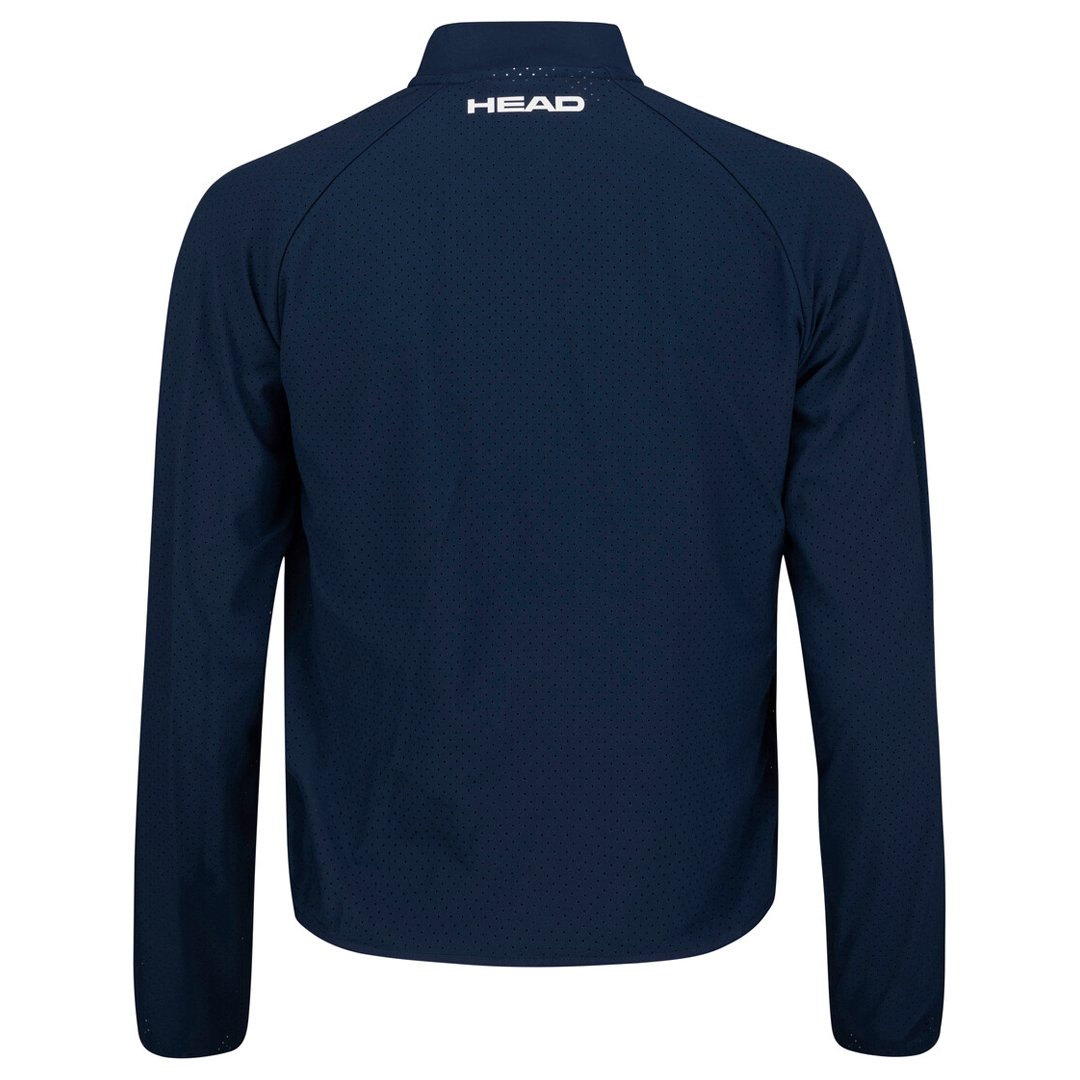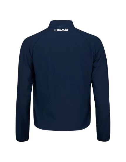 Damska bluza tenisowa Head LIZZY Jacket W Dark Blue wykonana z lekkiego i oddychającego materiału. Kołnierzyk typu stójka. Zamek błyskawiczny na całej długości bluzy.