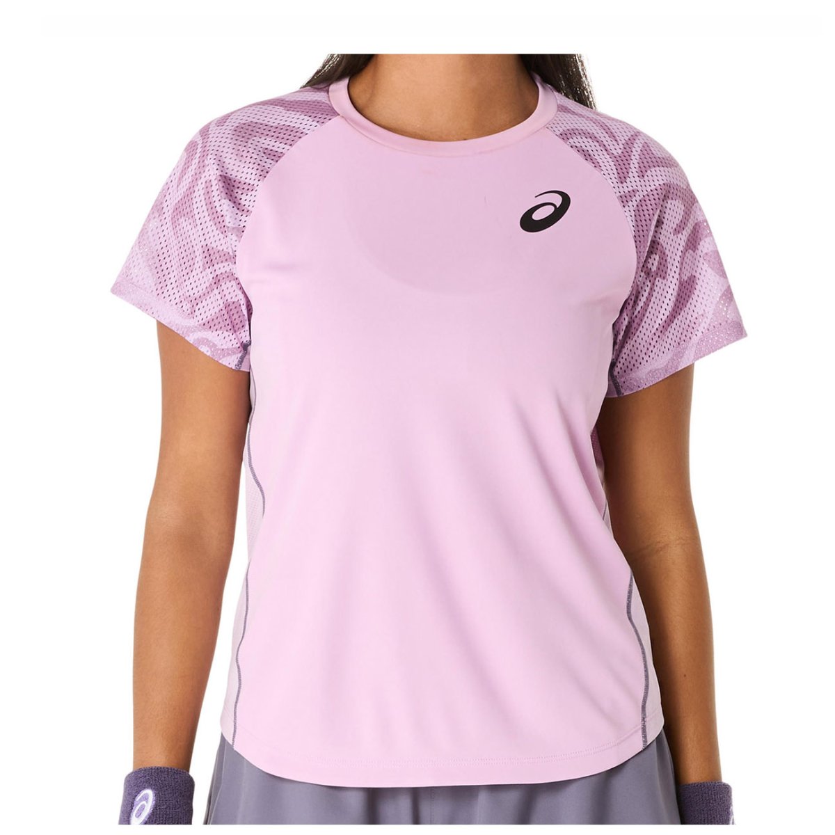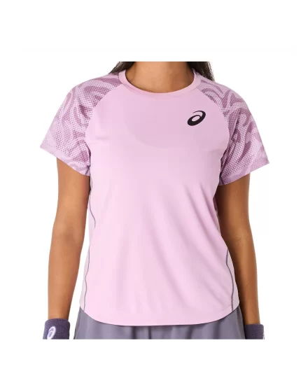 Niesamowicie komfortowa i przewiewna koszulka tenisowa w rózowym kolorze. Doskonała do gry w upalne dni (szybko odprowadza ciepło i nadmiar wilgoci na zewnątrz dzięki sprawdzonej technologii Asicsa - MotionDry).