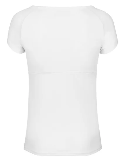 Biała, damska koszulka do tenisa Babolat Play Cap Sleeve Top. Koszulka lekka i wygodna, dzięki użyciu lekko rozciągliwego materiału dobrze dopasowuje się do ciała i nie ogranicza ruchów podczas gry. Koszulka posiada płaskie szwy, które minimalizują ryzyko otarć i zwiększają komfort podczas noszenia.