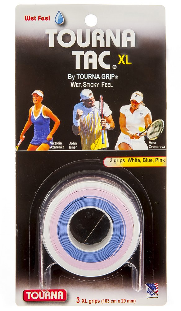Rewelacyjna owijka o optymalnie lepkiej powierzchni stworzona dla najbardziej wymagających graczy wyczynowych. Bardziej wytrzymała od owijek suchych - Tourna Grip. Tourna Tac oferuje szybką absorpcję potu i miękkie czucie rączki. Opakowanie zawiera 3 owijki (każda w innym kolorze: białym, niebieskim, różowym) i 3 tasiemki mocujące.