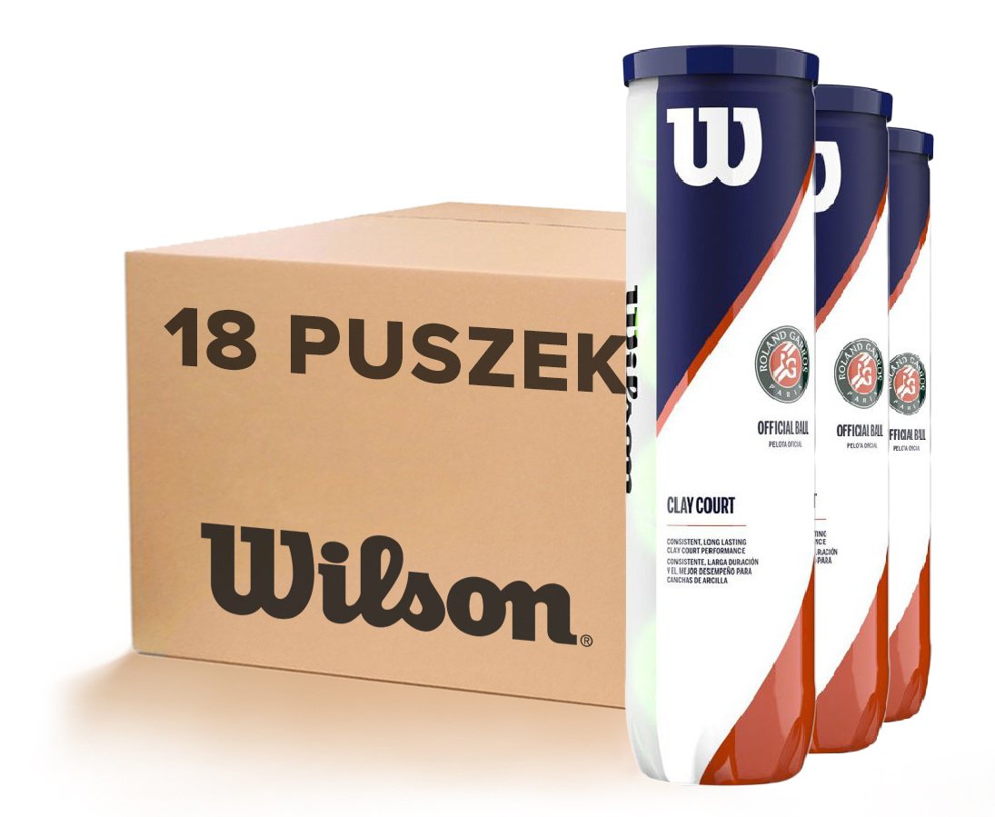Karton piłek tenisowych Wilson Roland Garros Clay Court. Piłki te przeznaczone są do rozgrywania turnieju Roland Garros (oficjalne piłki).