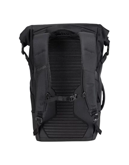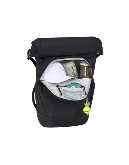 Oprócz konstrukcji typu roll-top, torba posiada różne kieszenie na akcesoria i przegrodę na kilka rakiet.