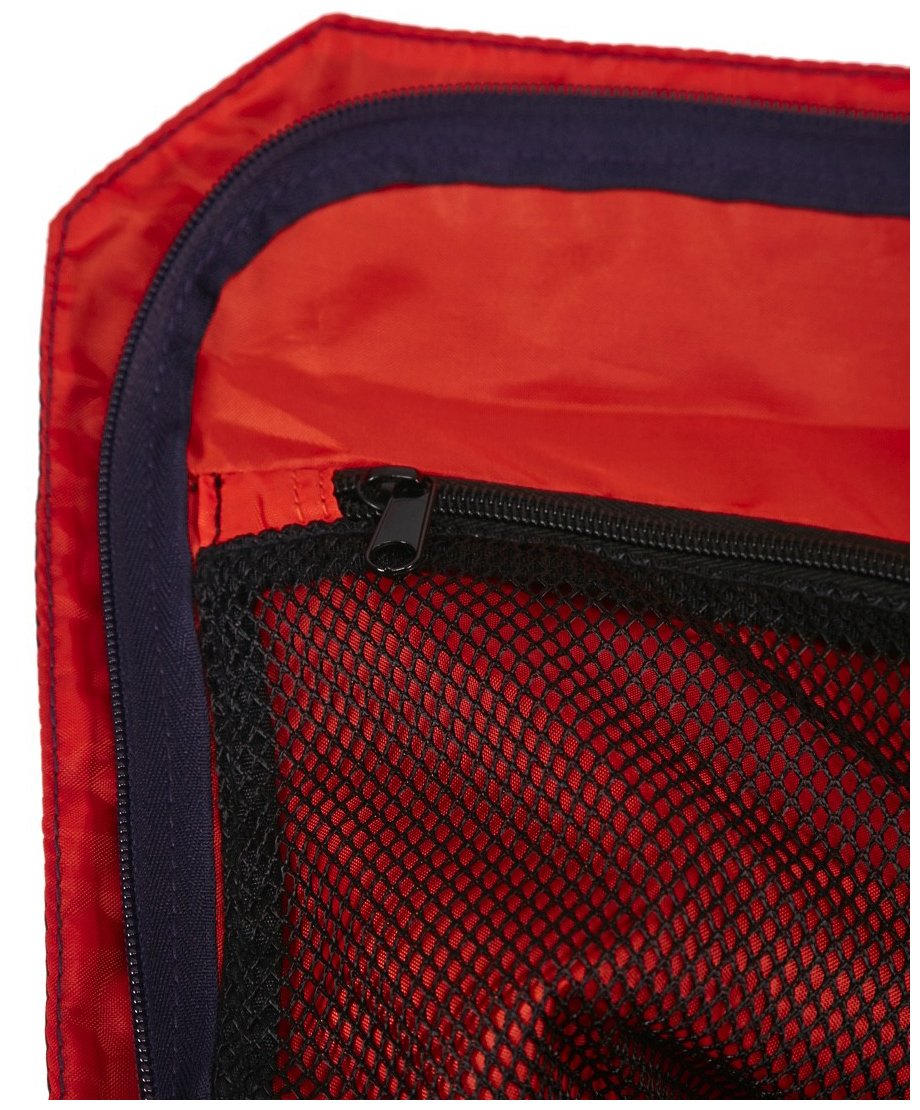 w wewnętrznej części klapy torby umieszczono kieszonkę z siatki. Na jednym końcu torby znajduje się kieszonka na akcesoria. Torba wykonana jest z lekkiego, wytrzymałego i wodoodpornego materiału (Tarpaulin). Podróżowanie z tą torbą ułatwiają wydłużone uchwyty umożliwiające przenoszenie w dłoni lub na ramieniu.